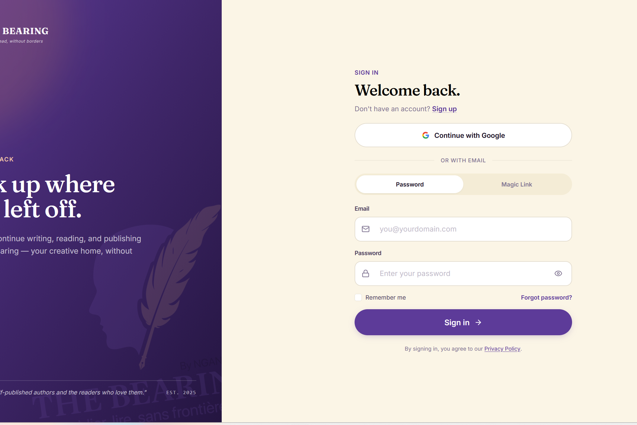 You don’t just publish on The Bearing — you belong to it. Build a community around your work, connect with readers who care, and grow within a platform shaped by shared purpose and long-term vision.